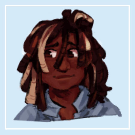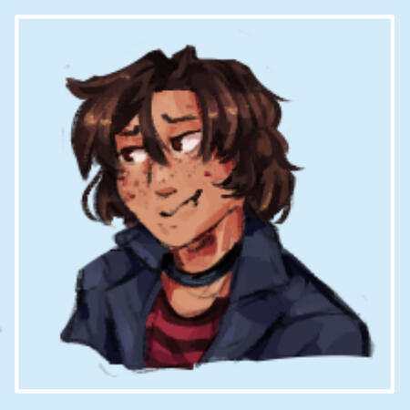 Cameron (Cam) Hughes- she/her- 17Cam is among one of the two kids who found Milo after his death. She’s someone who's been dead for most of her life, and that fact reflects a lot on her personality. She tends to be blunt with her words, and she’s a very apathetic person (upon first glance). Communication isn’t her strong suit, as she was hardly ever given the chance to socialize among people her own age. Cam first met August at the shelter that she was raised at, a place designated to protect and comfort the dead. Though she spent most of her youth at said shelter, she decided to set out and look for a necromancer on her own accord in her teens. August came with her.